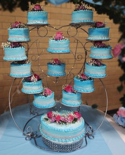 Base de acero macizo con recubrimiento de pintura electroestática color cromo de gran duración. Ideal para todo tipo de eventos con muchos invitados. Visita nuestra galería para encontrar opciones de decoración de XV años a bodas, esta base es un clásico Marbade.