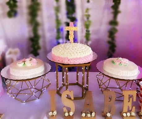 Este set consiste en 3 piezas, cada una incluye placa así que están listas para utilizarse. Perfectas para pastel, cupcakes, flores o lo que se te ocurra son el display perfecto para resaltar tus creaciones. Cada soporte incluye luz de series de focos led que funcionan mediante pilas. ¡Tienes que tenerlo!