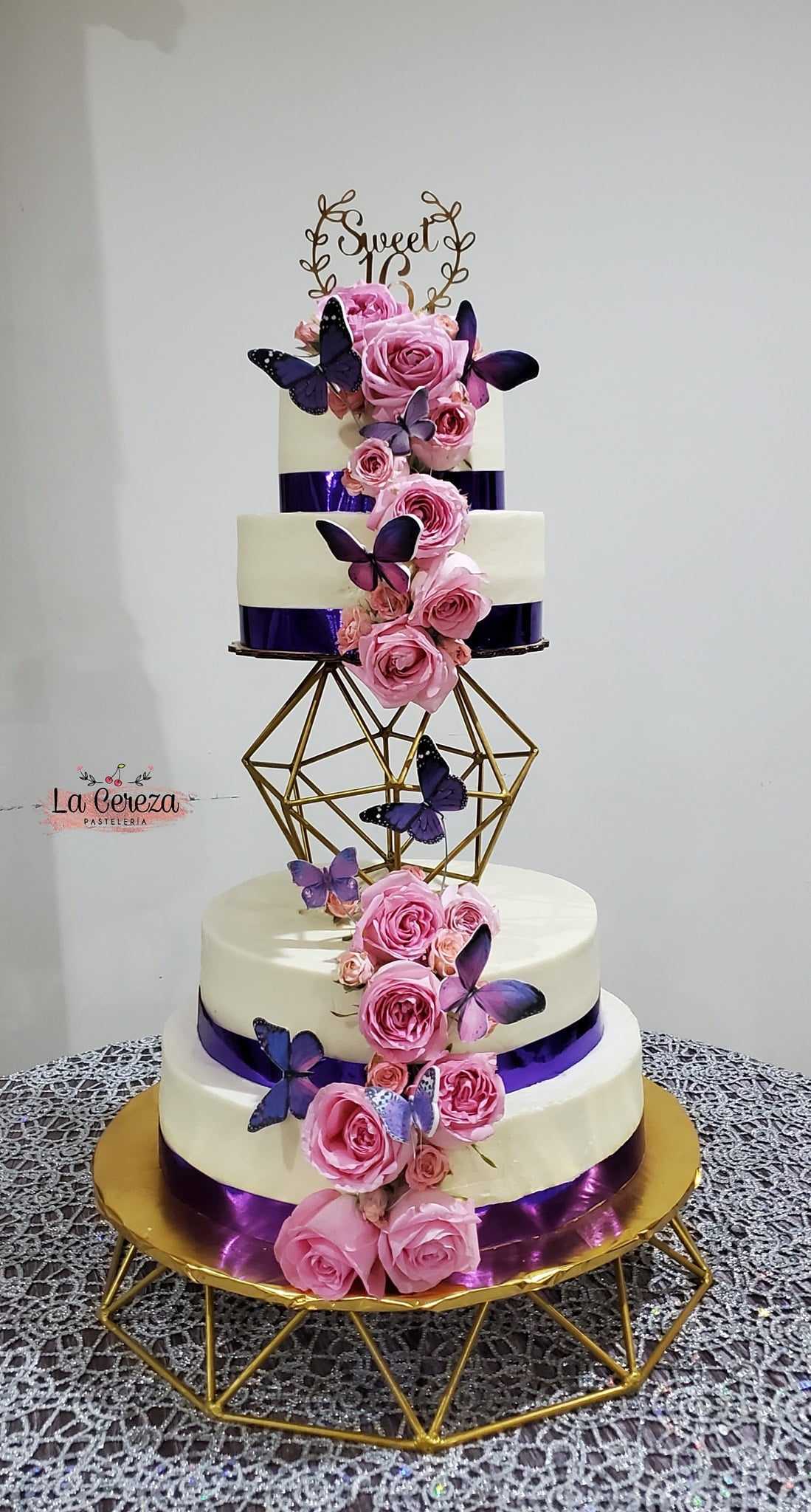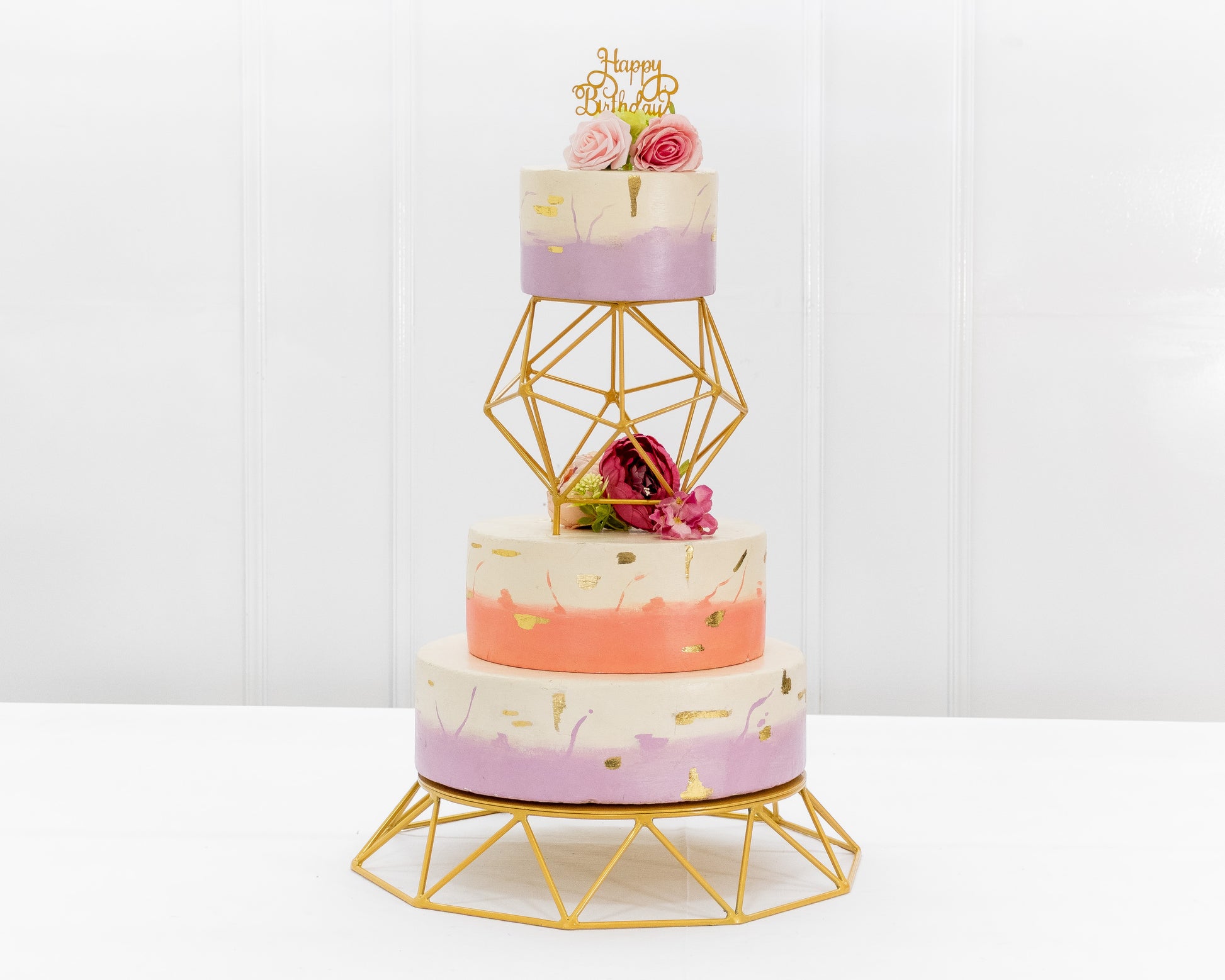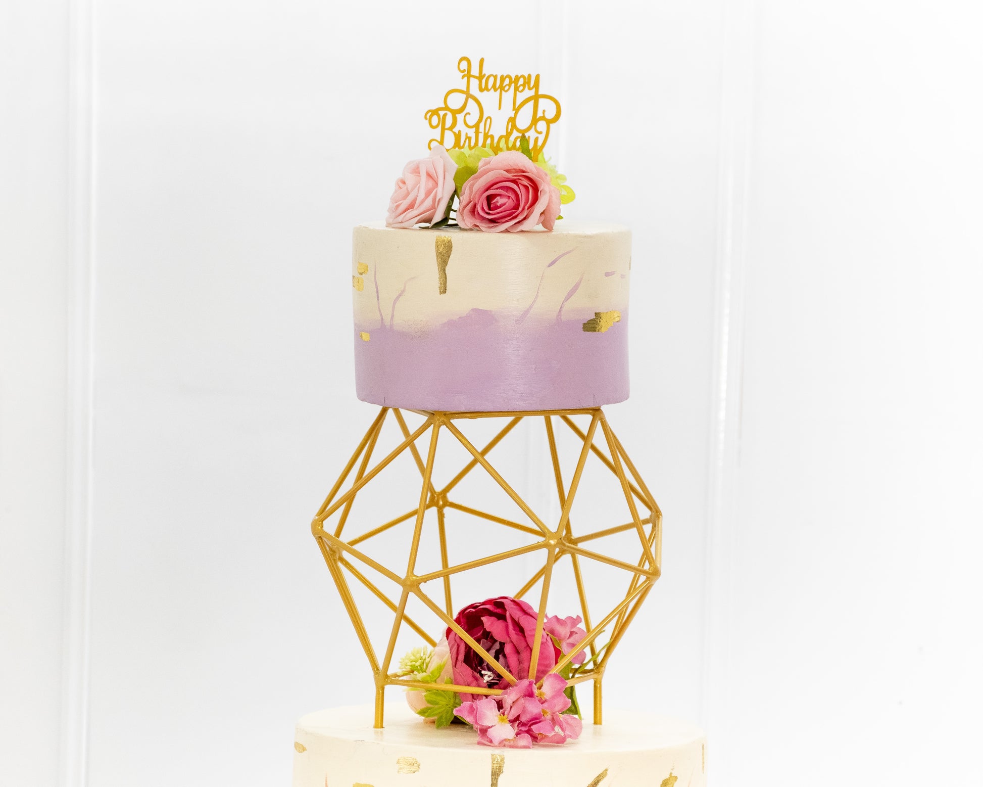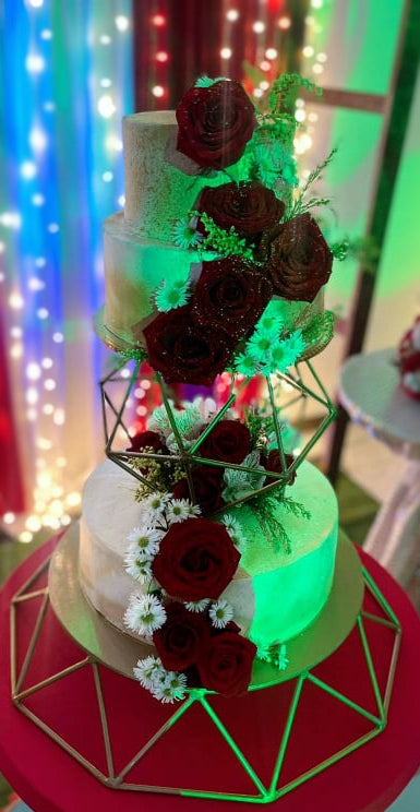 Este set incluye una base de 16 " de diámetro con placa, listo para utilizarse! y un  separador de pastel en forma de diamante para agregarle altura a tu pastel de la forma más original.  El separador puedes decorarlo con luz o flores y le dará un toque muy chic a tus pasteles, además puede usar cada una de las piezas por separado. Estamos seguros que te encantará