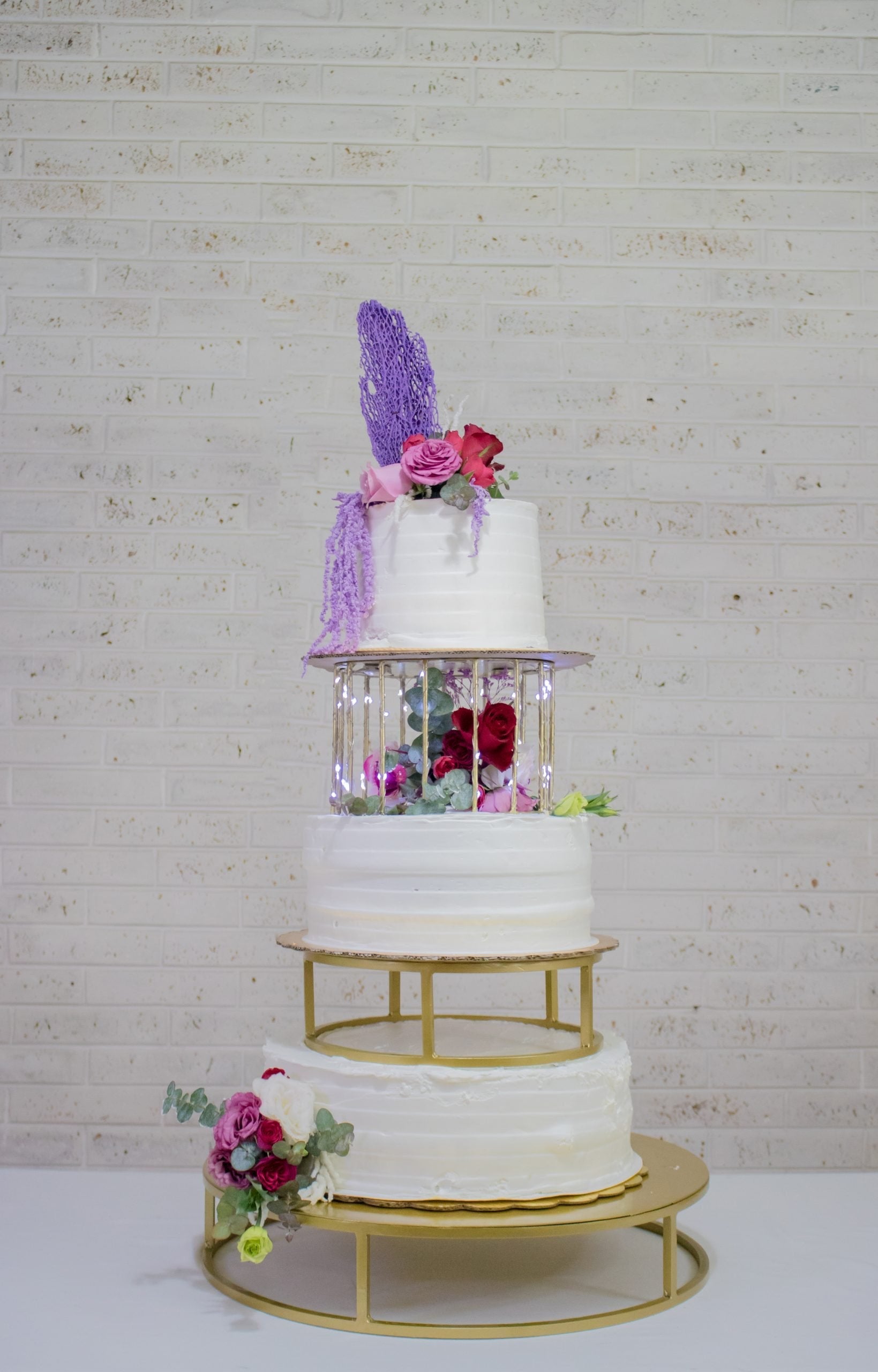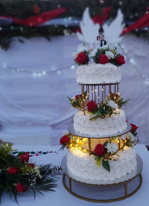 Este hermoso SET Jaula es lo último en tendencia para lograr un pastel de pisos con un toque moderno y sin complicaciones. Resalta cualquier pastel al agregar el espaciador pequeño en forma de jaula, coloca flores, naturaleza o la decoración de tu elección para dar un toque de sofisticación. La pieza más grande, el soporte de 20" de diámetro, puedes utilizarla por separado para colocar pastel o postres individuales. Para lograr la forma de torre, coloca la pieza grande primero con el pastel más grande, luego coloca el separador mediano enterrándolo en el pastel con sus practicas “patas de 5”, coloque otro pastel y luego el separador en forma de jaula que incluye una serie de focos led que funciona mediante pila también enterrándolo, y por último un pastel pequeño También puedes usar cada pieza por separado o. Coloque los pasteles en sus soportes de forma horizontal como se muestra en las fotos.