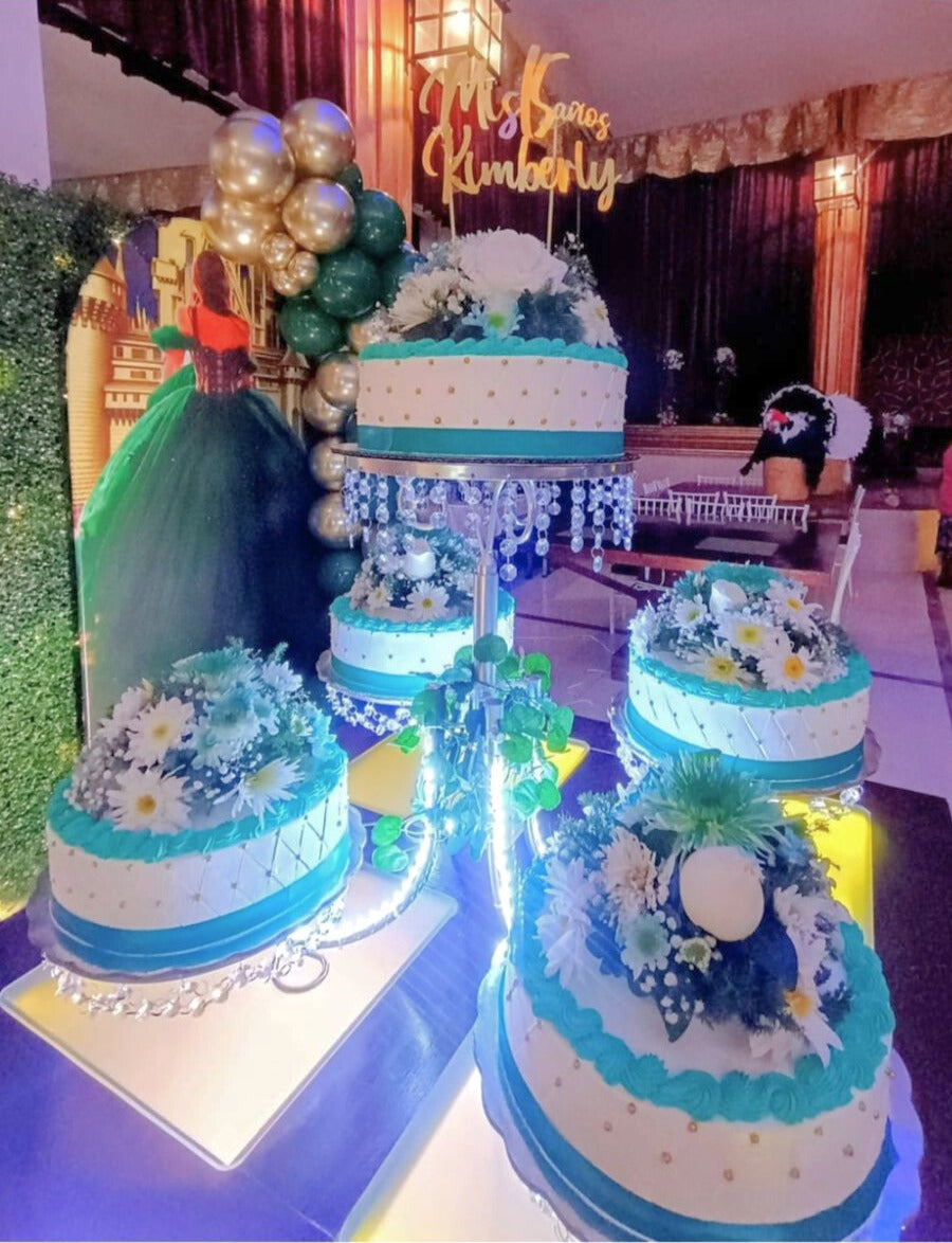 Hermosa base de acero macizo con recubrimiento de pintura color cromo horneada de gran duración. Esta base para pastel simula a una hermoso candelabro, incluye pedrería en cada uno de sus aros con luz de fondo que hará que brillen tus pasteles. Esta base es elegante y a la vez práctica, además cabrá en un espacio pequeño pero hará que tus pasteles sean el centro de atención creando volumen y presencia imponente, Sus 5 aros de 12 pulgadas de diámetro pueden sostener pasteles de hasta 7 kilos por aro. Su elegante estilo puede adaptarse a cualquier diseño de pastel y cualquier evento como Bodas, Quinceaños y cumpleaños.