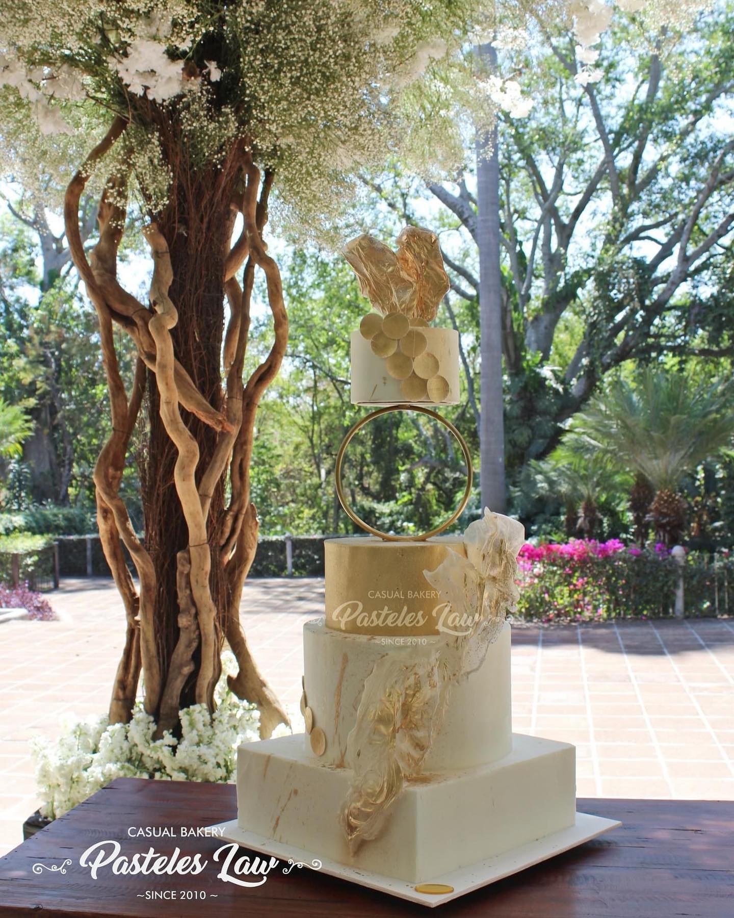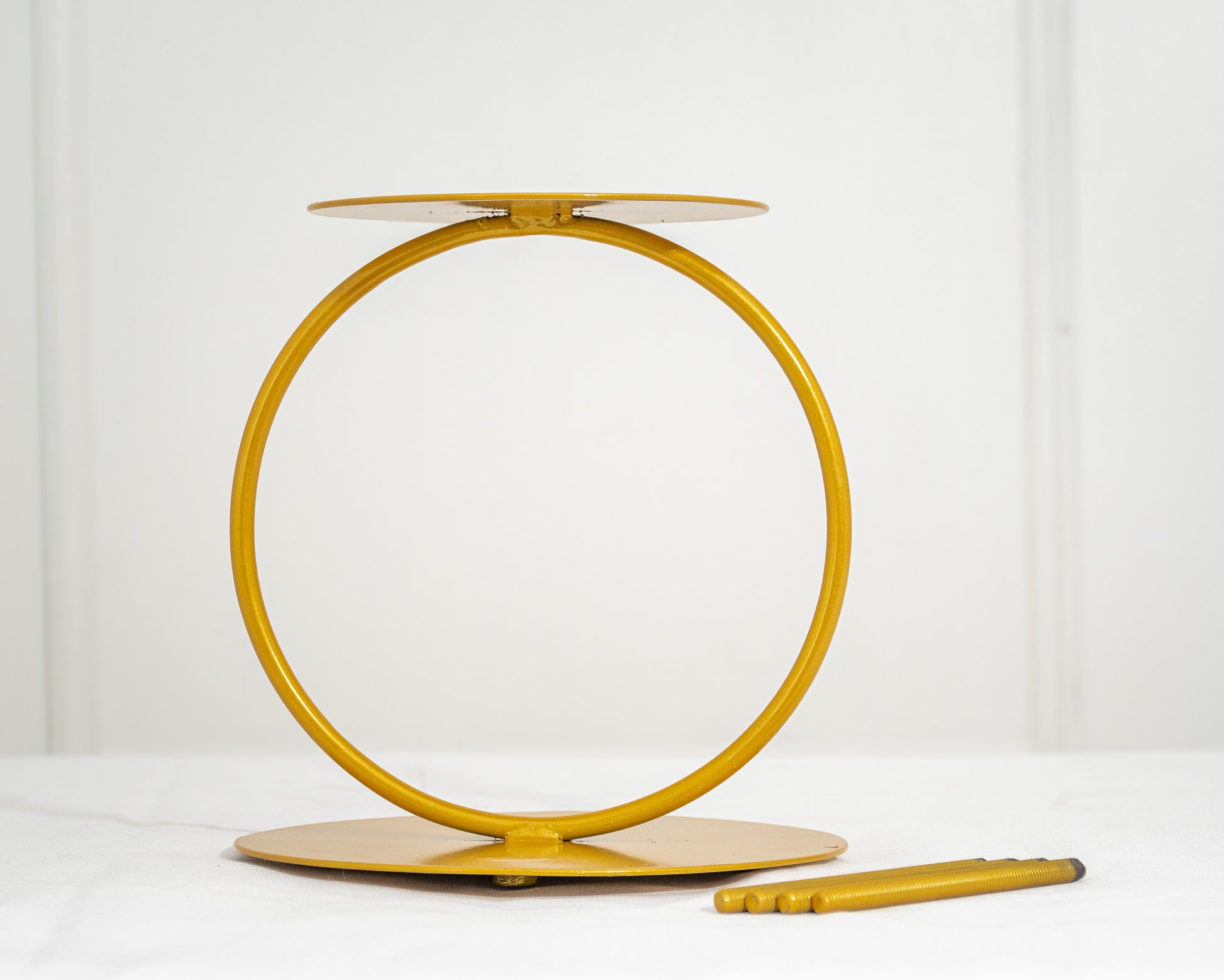 El separador Anillo en color oro se utiliza entre piso y piso de pastel, gracias a sus "patitas" desarmables ahora puedes usarlo en pasteles húmedos es como un cake topper pero mucho más sofisticado que podrás usar continuamente y le dará un toque muy especial a tus creaciones pues brinda volumen y la idea de un gran pastel, aunque este solo sea de dos o tres pisos.